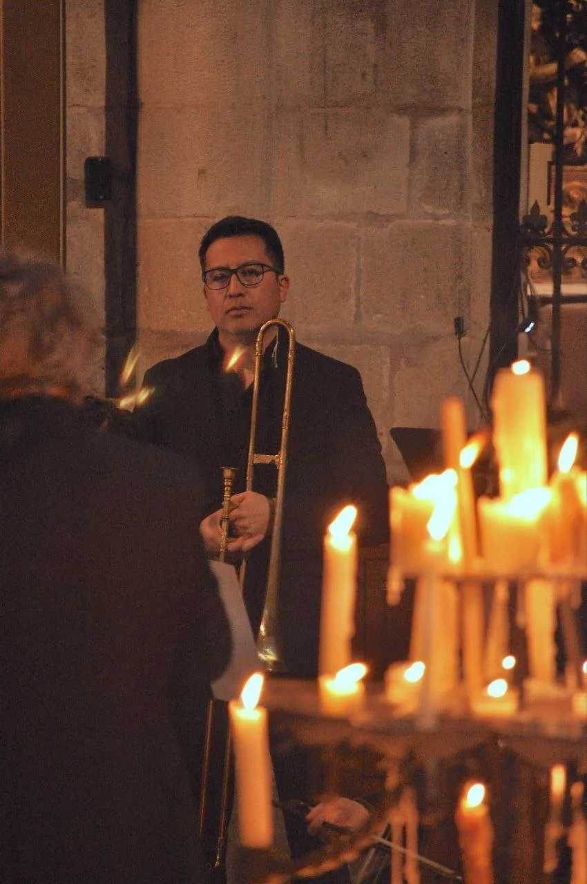 René Ramírez Valle es un intérprete de trombón y sacabuche (trombón histórico), residente de Michoacán y originario de Santo Domingo Yanhuitlán, Oax., especializado tanto en música sinfónica como en música antigua. Formado en la Universidad Michoacana y con una maestría por la Escola Superior de Música de Catalunya, ha colaborado con orquestas y ensambles en México, Sudamérica y Europa. Su trayectoria incluye trabajo con agrupaciones dedicadas a la música novohispana y proyectos de música histórica, así como presentaciones como solista en diversas orquestas. Cofundador de las Jornadas de Música Antigua de Morelia y de la Capilla Nueva Valladolid, René se ha consolidado como una figura versátil y comprometida con la interpretación y difusión del trombón y el sacabuche.